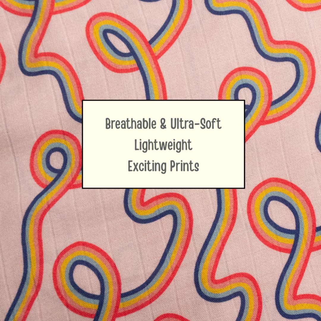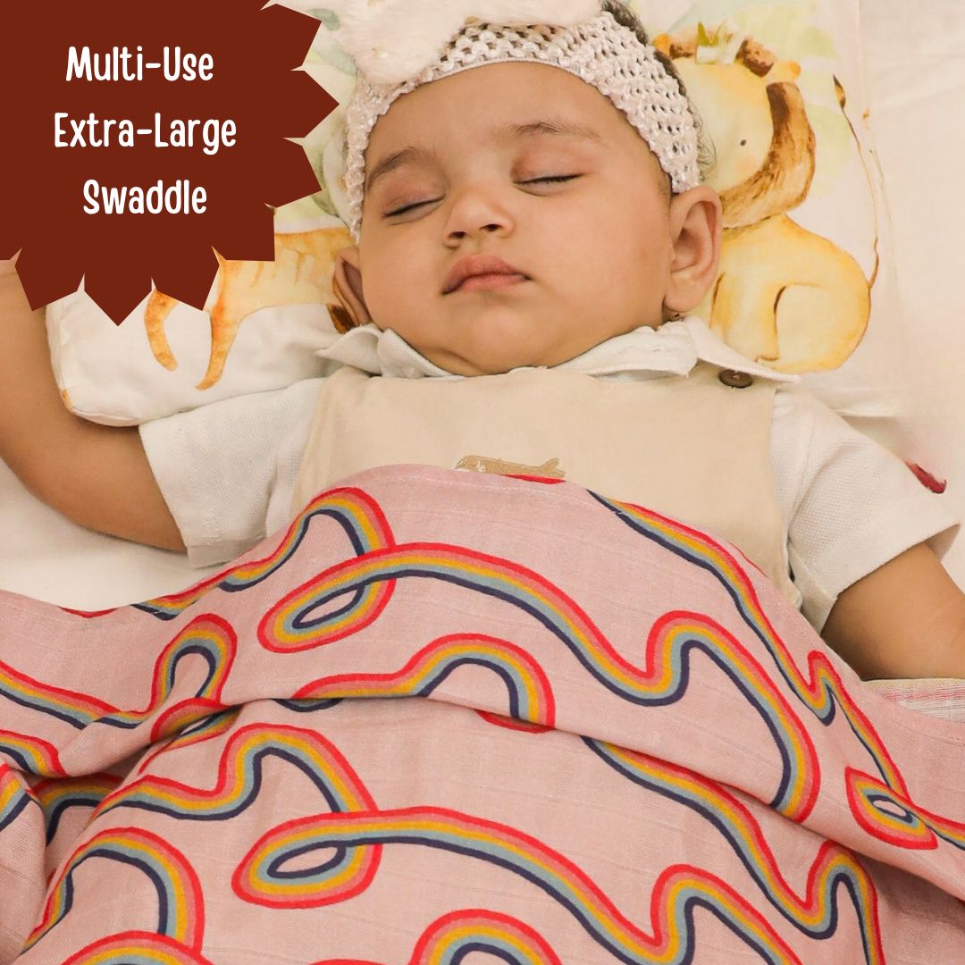Add a burst of playful charm to your baby’s snuggle time with our Loopsie swaddle. Crafted in ultra-soft, breathable muslin cotton, this swaddle features a rainbow-inspired wavy print on a blush pink base — a joyful design that feels as fun as it looks.