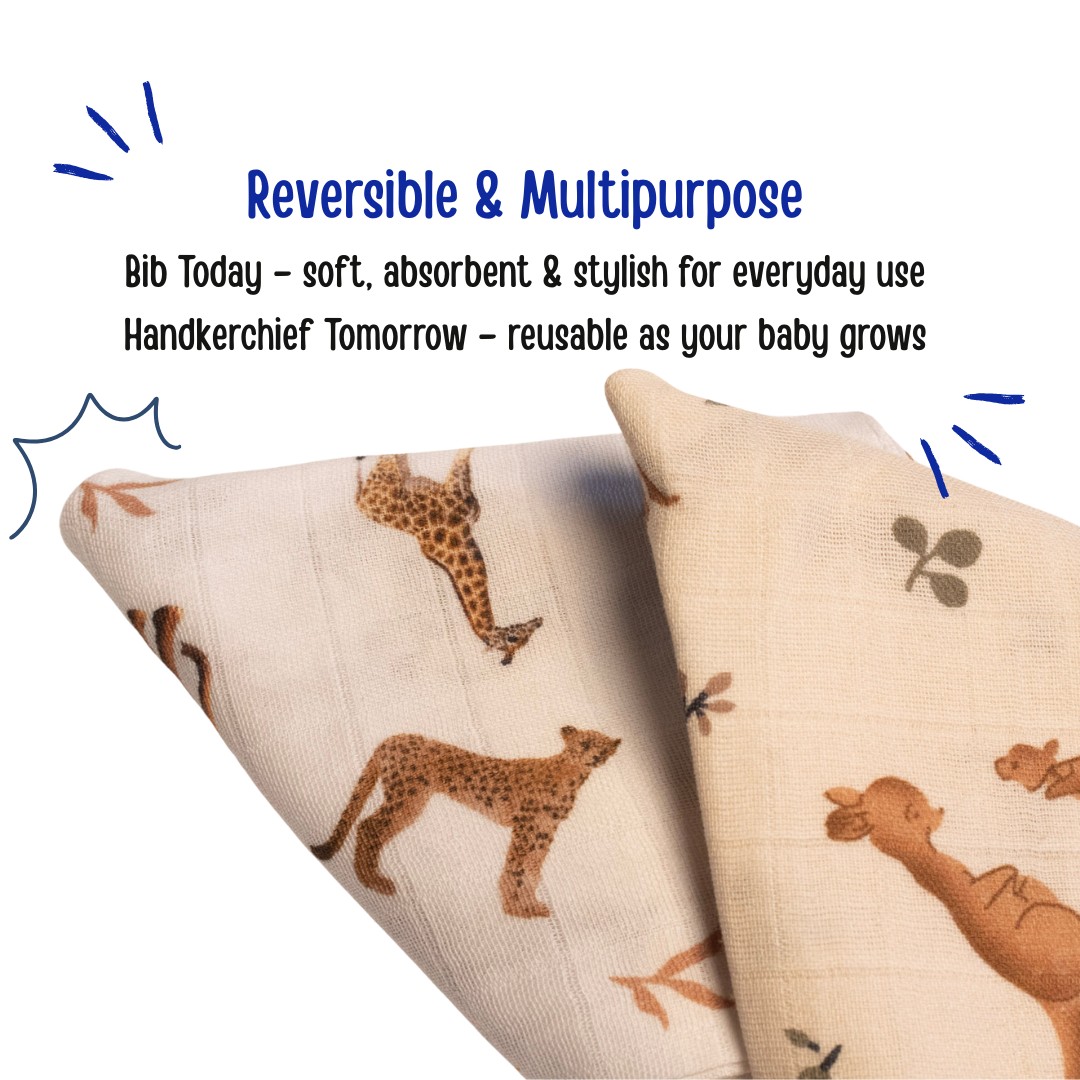 From the mighty roar of the jungle to the happy hops of the outback, the Roar & Hops Bib Set brings adventure to your baby’s everyday essentials. Crafted from 100% premium organic muslin cotton, these bibs are double-layered, ultra-soft, and breathable, ensuring comfort for your little explorer.