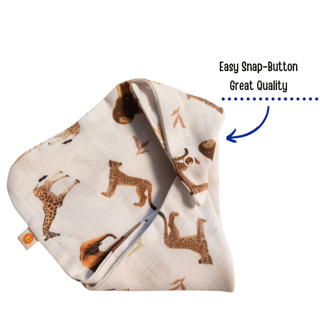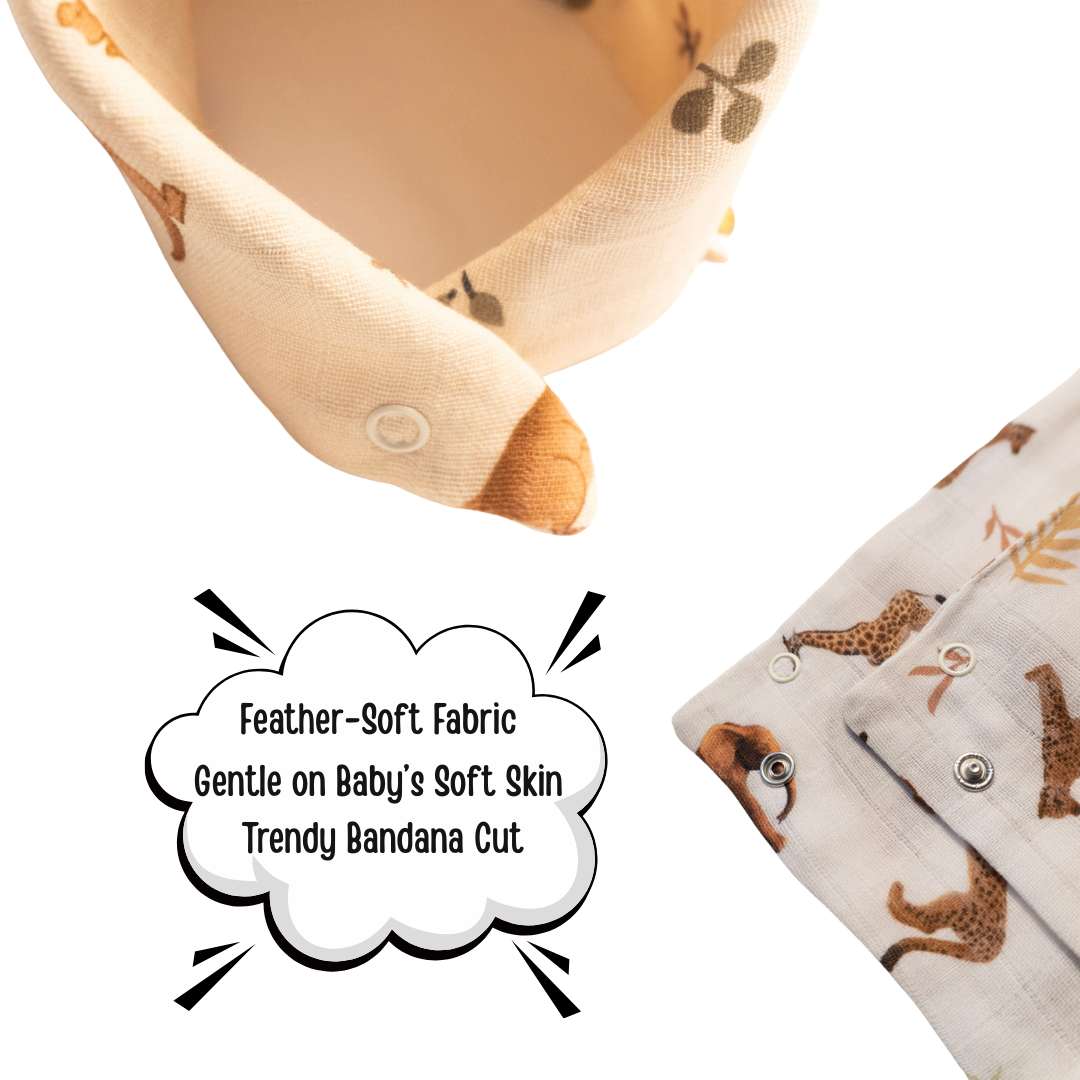 With adjustable snaps, the bibs grow with your baby and even transform into handy handkerchiefs as they grow older. The bandana-style cut makes them as stylish as they are functional, while the fun animal prints keep mealtimes and playtimes mess-free yet playful.