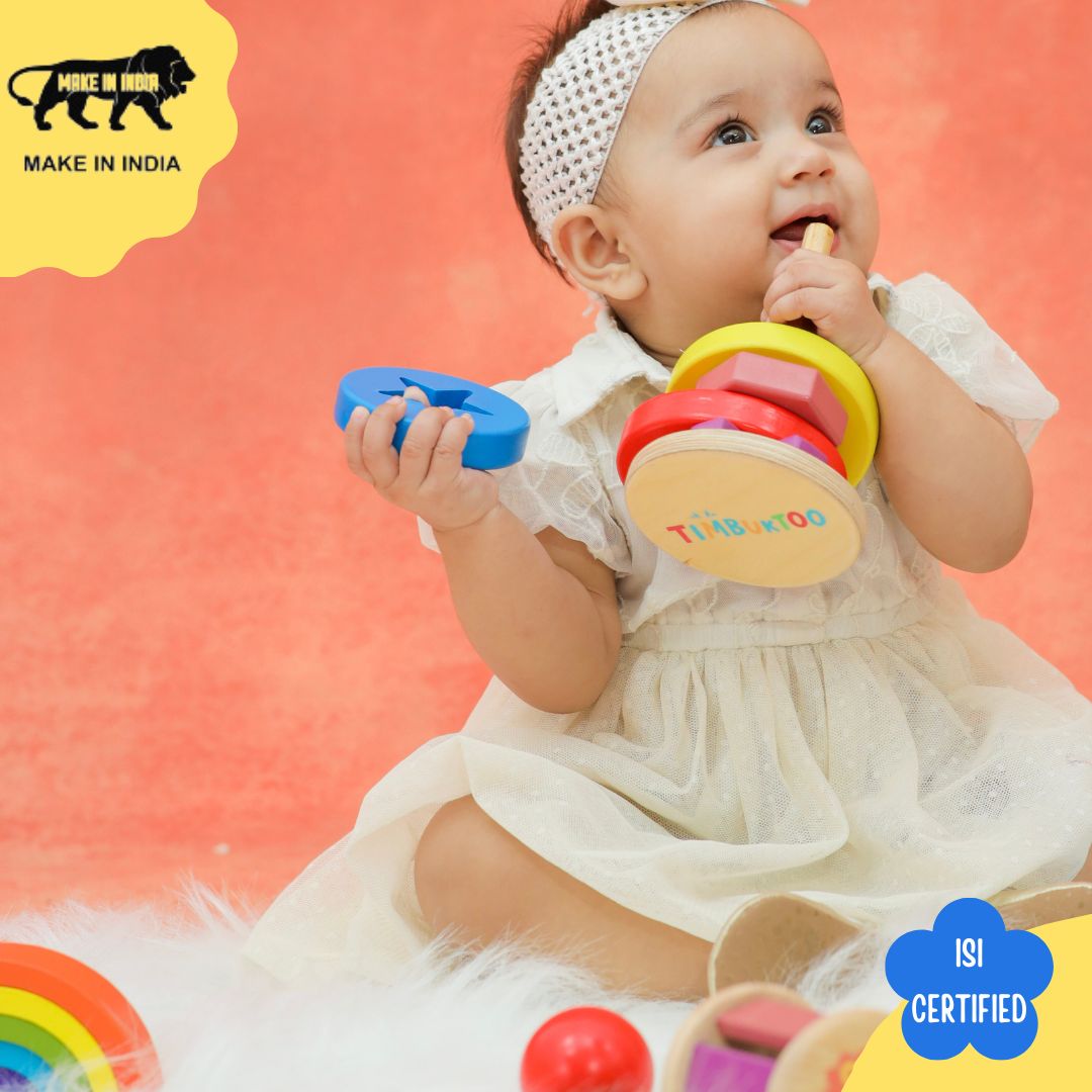 • Sensory Fun: Bold colors and tactile stacking create a multi-sensory experience
