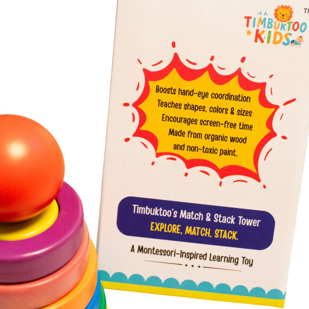 The Match & Stack Tower is a Montessori-inspired wooden toy designed to make learning playful and hands-on. With bright colors, fun shapes, and stacking challenges, it helps little ones build early skills while keeping playtime screen-free and engaging.