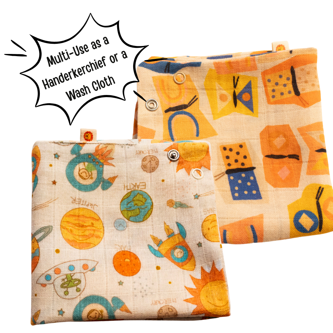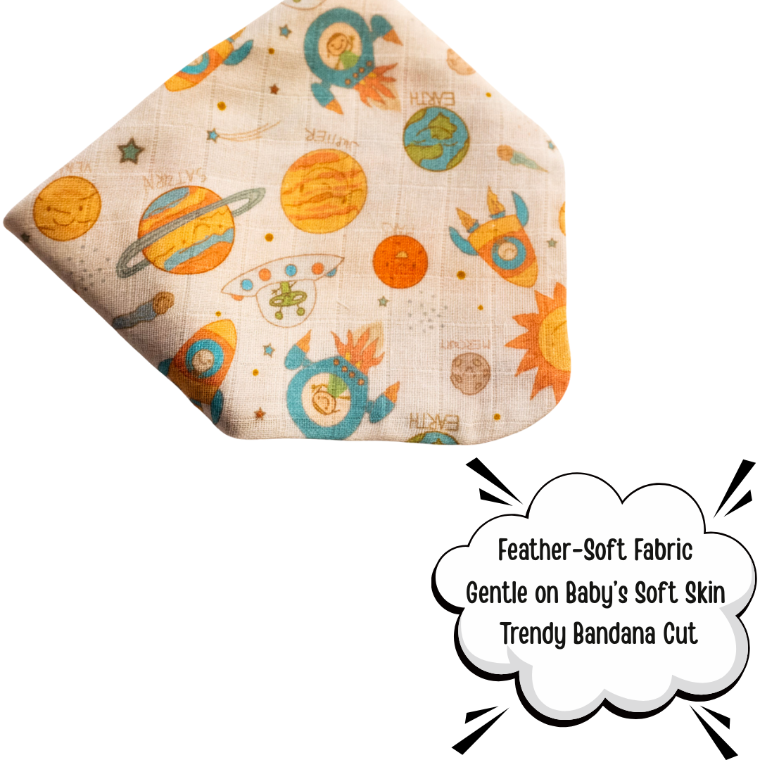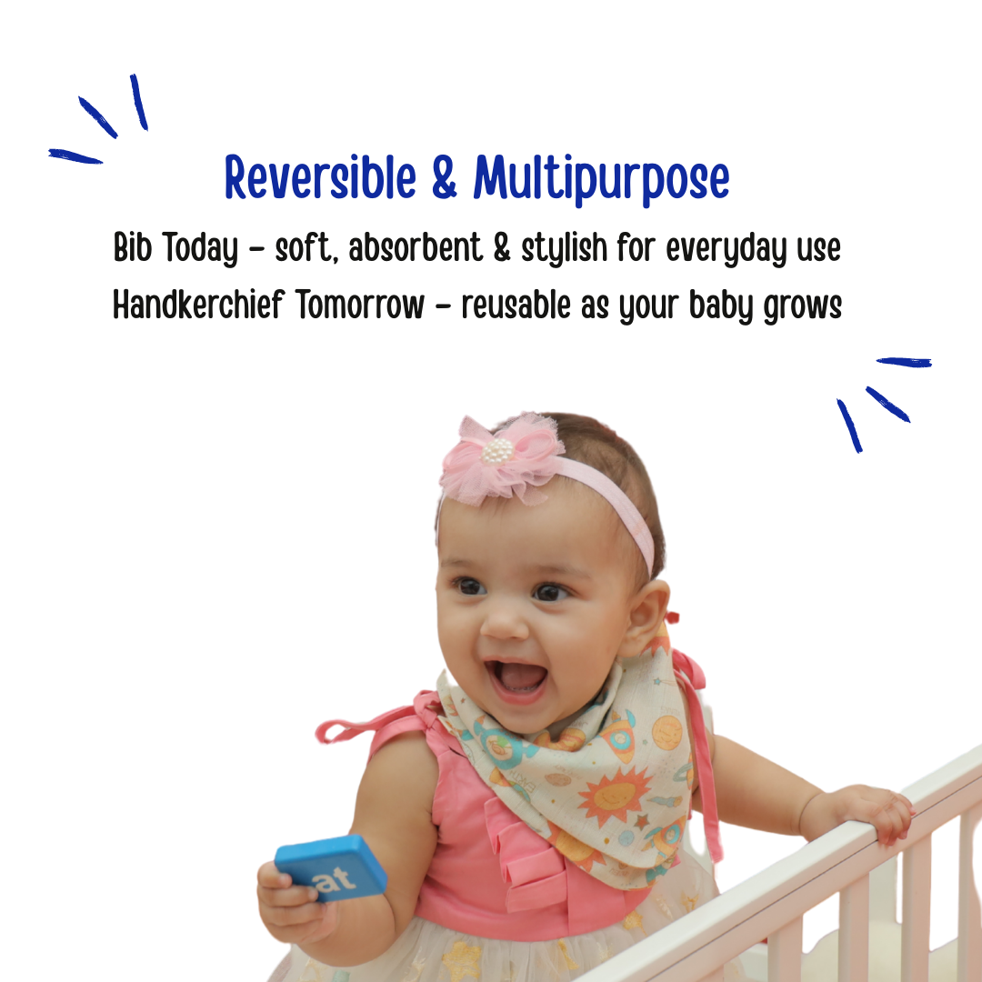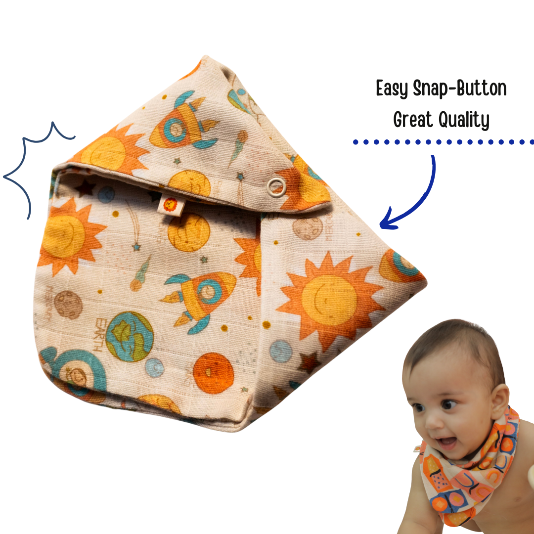 Designed to grow with your baby, these bibs arenβt just drool catchers β they transform into handy handkerchiefs as your child grows. With stylish bandana-style cuts, playful butterfly prints, and dreamy space adventures, theyβre perfect for your stylish baby.